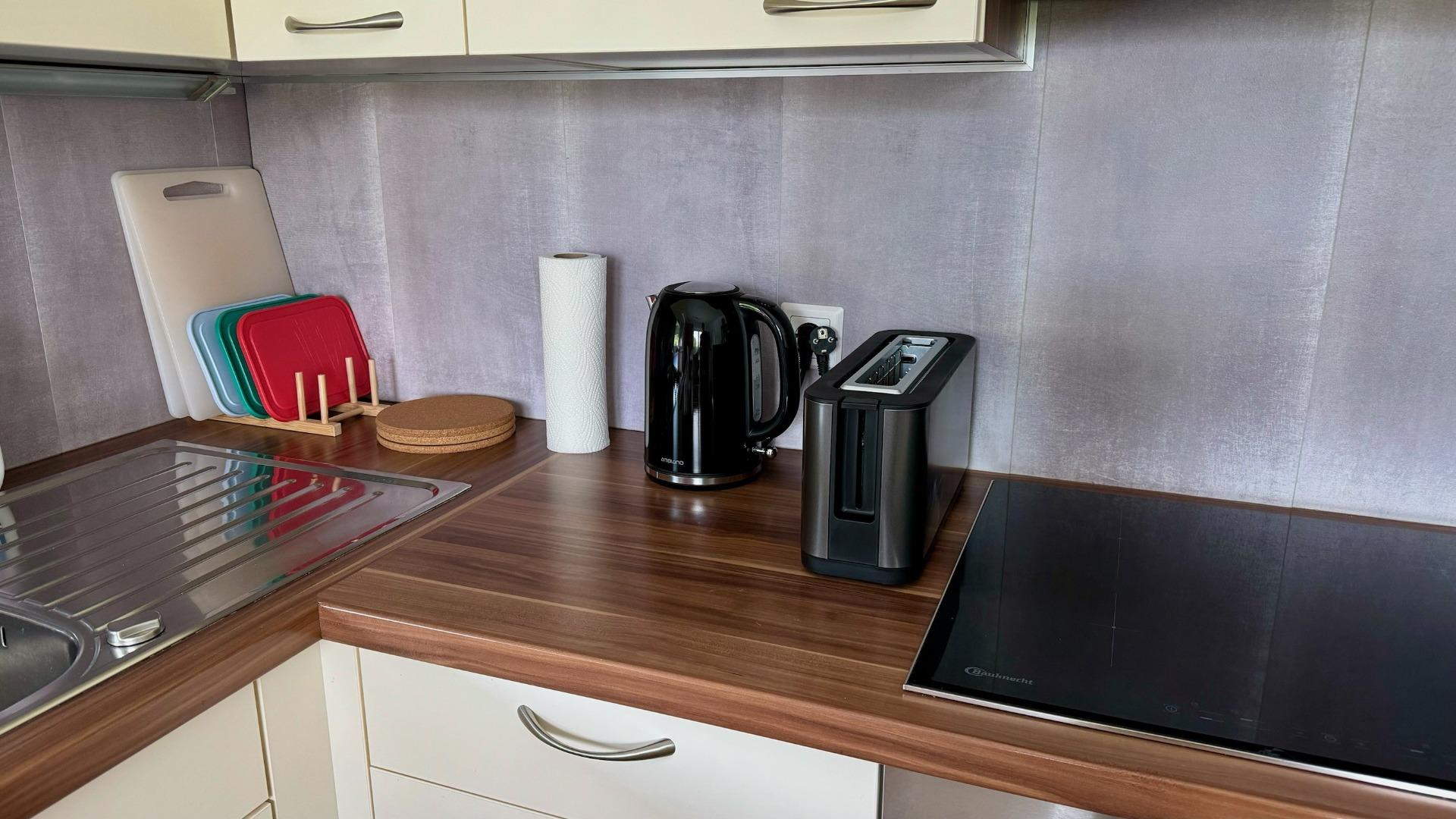 Bettwäsche, Handtücher sowie Kaffee und Tee sind vorhanden, damit Sie sich sofort wohlfühlen. Für zusätzlichen Komfort stehen WLAN, Waschmaschine und Kühlschrank zur Verfügung.