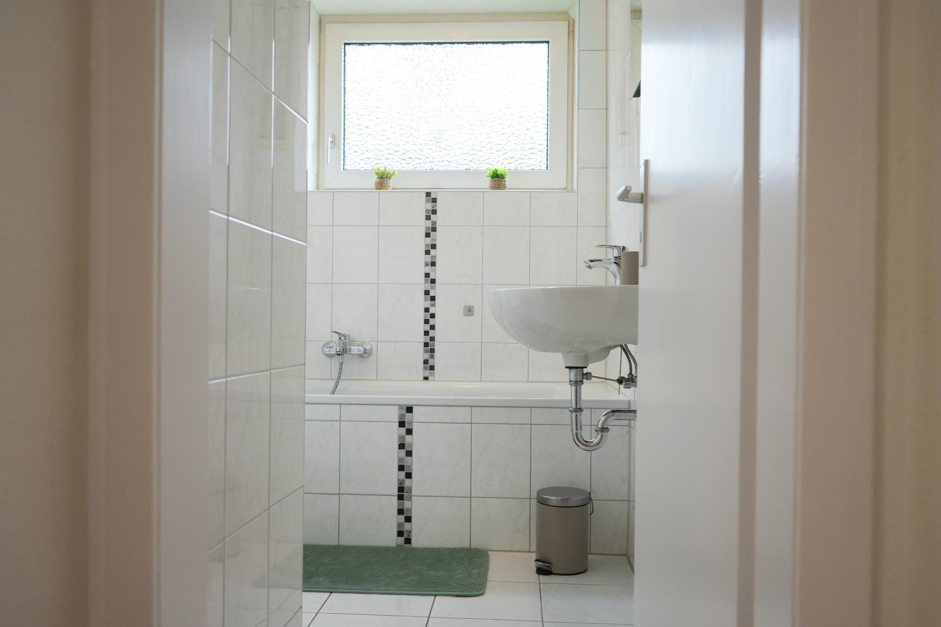 Das Badezimmer ist durch ein Fenster mit Tageslicht und Möglichkeit zur Lüftung für größere Gruppen gut abgestimmt. 🛁