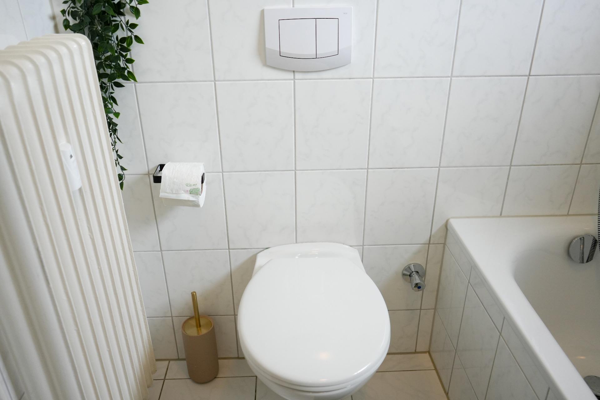 Das Badezimmer ist mit einer Badewanne und funktionalen Benutzung als Dusche ausgestattet.